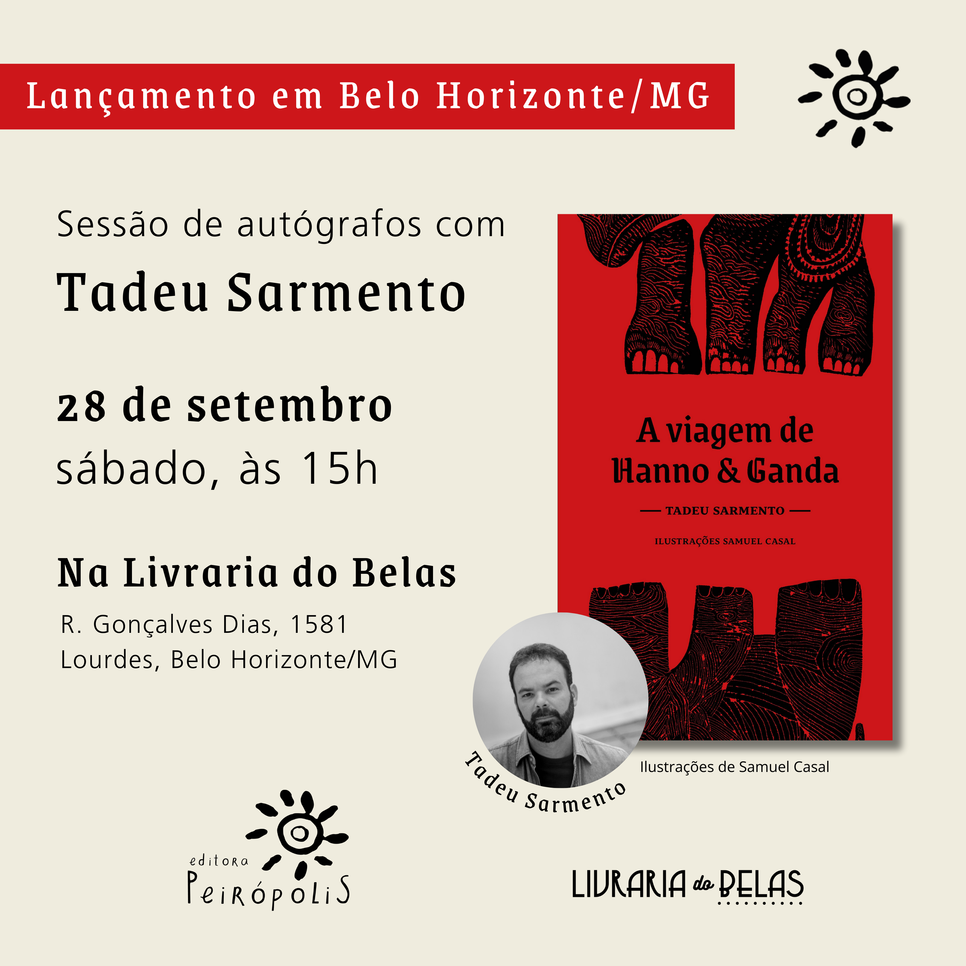 O autor Tadeu Sarmento lança A viagem de Hanno & Ganda no dia 28 de setembro, a partir das 15h, na Livraria do...