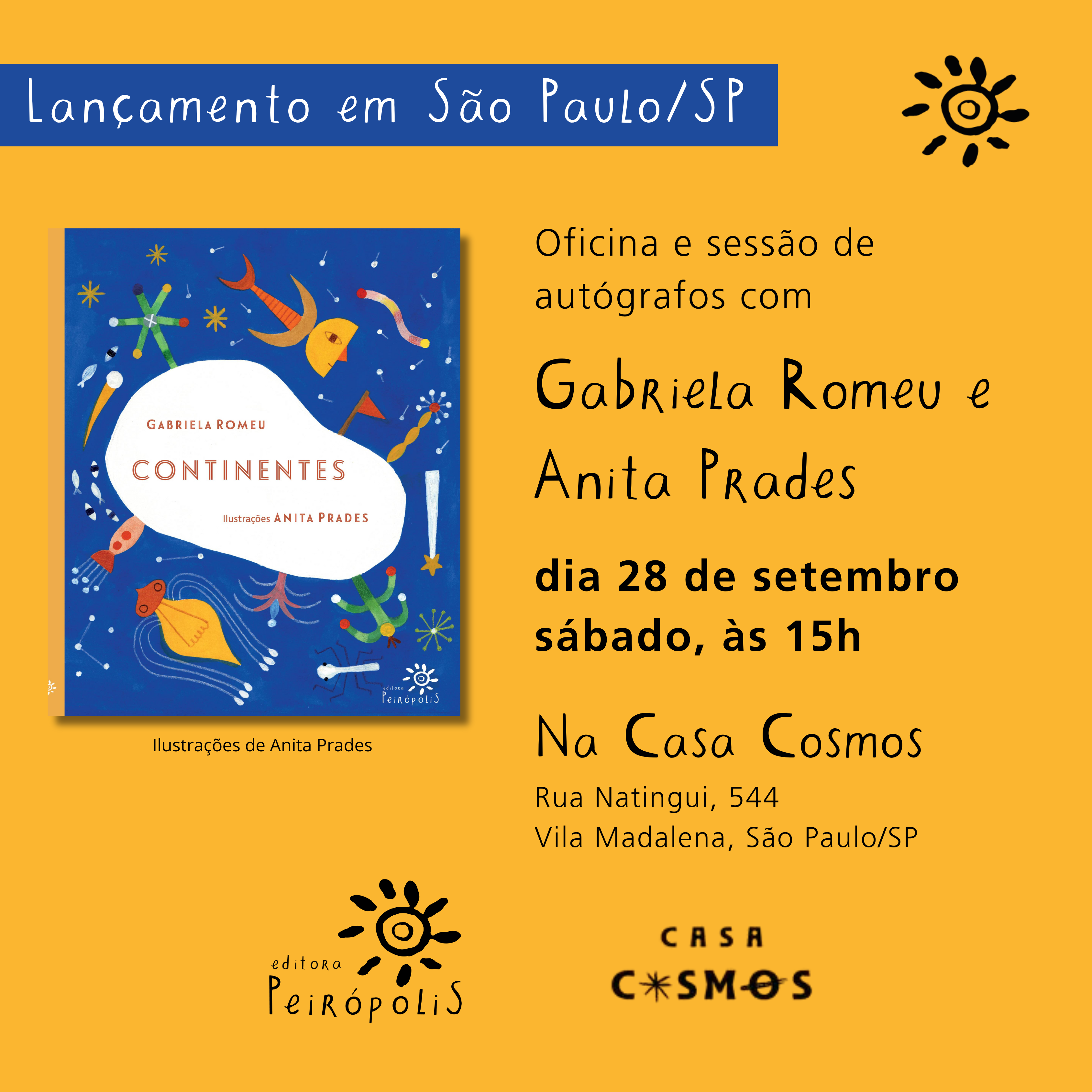 A autora Gabriela Romeu e a ilustradora Anita Prades lançam Continentes no dia 28 de setembro, a partir das 15h, na...